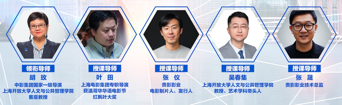 授课导师叶田为上海电影集团专职导演,曾获得温哥华华语电影节红枫叶大奖;张仪作为职业电影制片人、发行人,创作的多部全AI视频作品处于行业领先水平;张晟曾任职福建海峡电视台,长期从事影视相关技术和创作;上海开放大学教授、人文学科带头人吴春集学术著作丰富并深度参与多部影视剧创作。