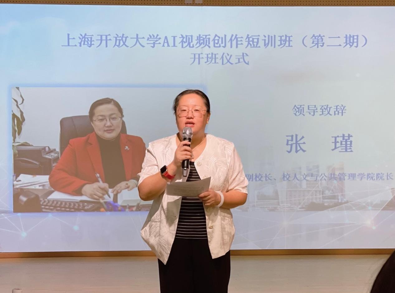 上海开放大学副校长兼人文与公共管理学院院长张瑾代表学校欢迎新一期全国各地学员们的到来,她表示,首期AI视频创作短训班的好师资、好设计和好口碑,是第二期AI 视频班仅仅与第一期时隔一个月就成功开班的关键。5天的实战学习,让零基础的学员也能够真正运用AI构思和创意脚本,运用AI开展视听语言的设计,通过创作完成一部AI短视频结业。此外,学员们的优秀作品不仅可以推荐参加各类大赛,还有机会在主流视频平台展播。她深信,AI 技术的快速发展、AI 短视频创作的巨大社会需求,以及该班十分突出的竞争优势,将在后续迎来更大的发展空间。
