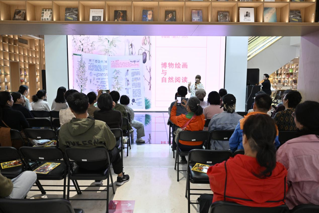 “上海公园中常见的丝兰,年年绽放出大串花朵,却从未见其结出果实,这背后藏着怎样的自然奥秘?”活动现场,李聪颖以身边常见却易被忽视的植物现象开篇,迅速拉近了与市民的情感距离。这位36岁开启博物人生、四十余岁毅然全职深耕博物绘画领域的创作者,用自身经历印证了“自然是最好的疗愈师”这一理念。非科班出身的她,在日复一日描摹草木虫鱼的过程中,既找到了清晰的职业方向,更抚平了内心的浮躁,而这份“慢下来、看清楚、安下来”的状态,正是当下都市人最为稀缺的心灵养分。