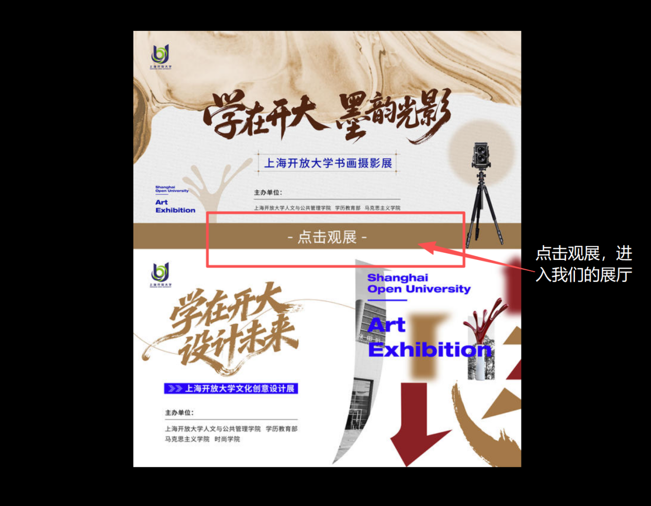 日前,上海开放大学正在开展2025年“学在开大 设计未来”文化创意设计竞赛和2025年“学在开大 墨韵光影”书画摄影作品竞赛。16个学院(分校、教学点)积极组织学生参加,共选送了253件作品参赛。为加强学习交流,我们将对获得一、二、三等奖的作品进行线下和线上展示。其中,线下展示将在国顺路校区学习广场一楼大厅(12月5日-12月12日)和杨浦YOUNG剧场举行(12月7日晚)。同时,我们还设置了“艺术云展厅”,欢迎更多的系统分校师生在线观摩。