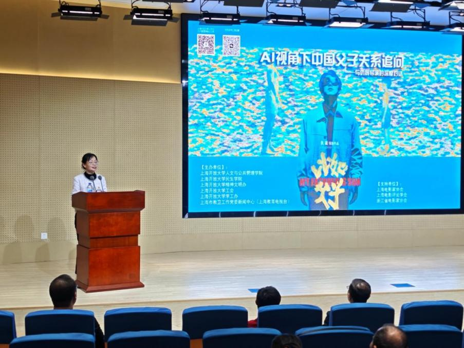 《比如父子》是仇晟导演历时七年创作、为纪念双亲创作的散文诗式电影。上海开放大学人文与公共管理学院党总支书记林晓英在作影片导赏时表示,这部作品将AI科技与人文精神融合,既引发观众对传统亲情内涵的审视、对现代科技变革的思考,更传递出释怀过往、珍惜当下、展望未来的情感共鸣。支持这样兼具艺术探索价值与人文关怀温度的电影,也是本次活动的一项初衷。
