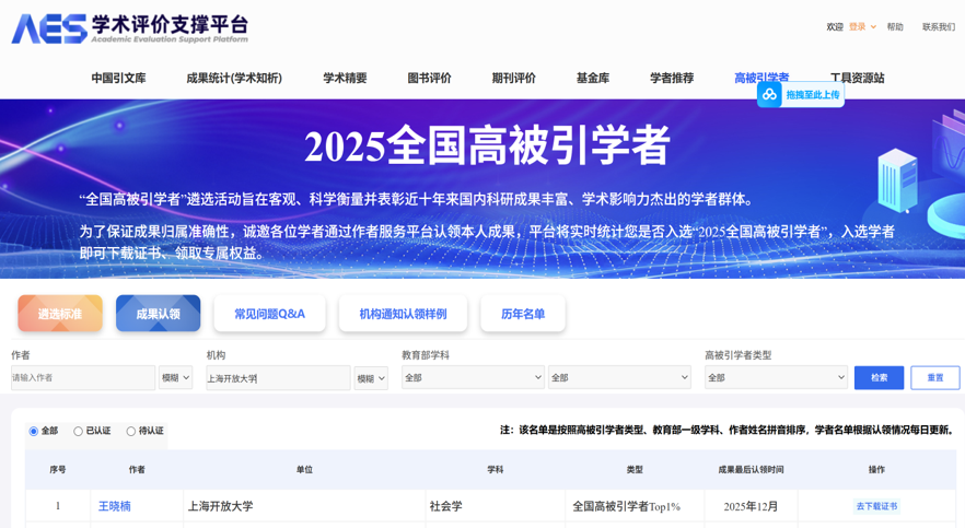 为了全面、客观、科学地衡量并表彰近十年来,在国内科研成果方面表现出突出、具有重要影响力的学者群体。中国知网2024年首次启动了“中国知网高被引学者”评选活动。2025年“知网评价中心”继续秉持科学、客观的原则,开展“2025全国高被引学者”评选。