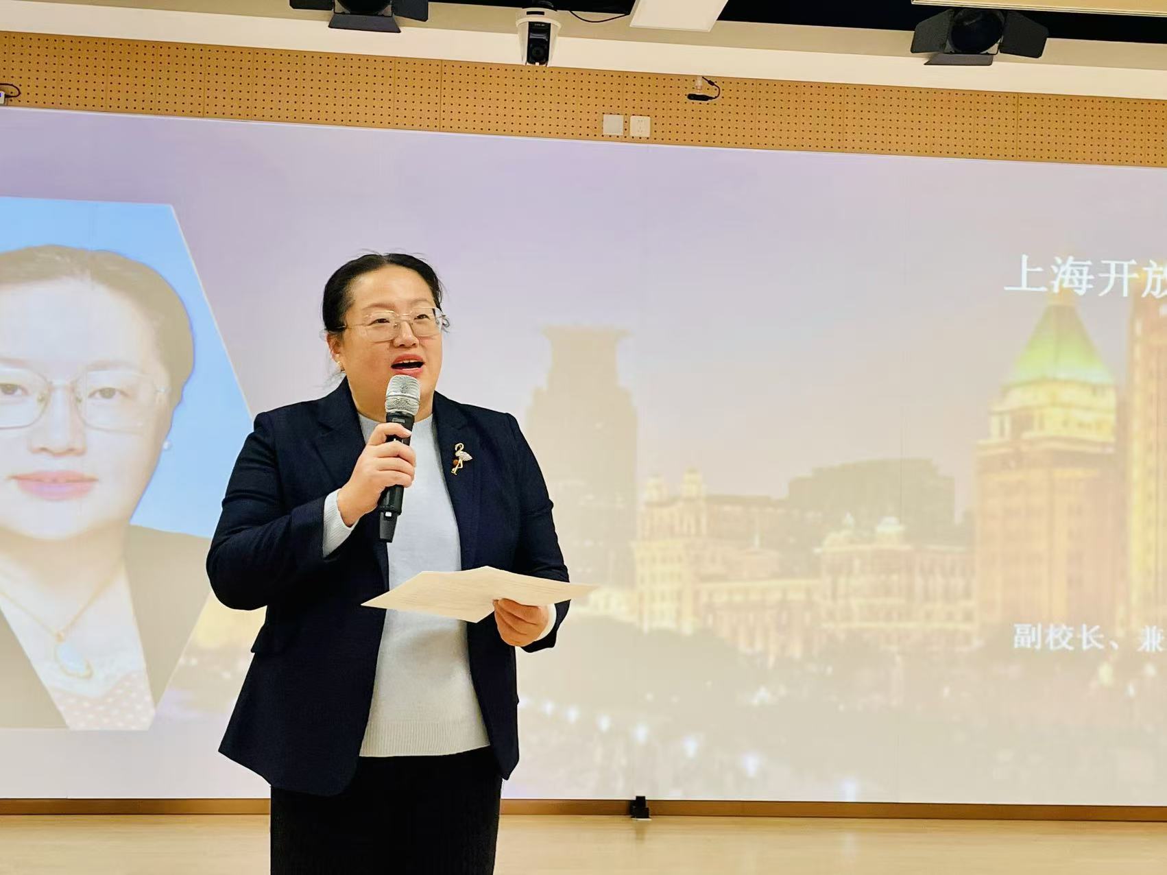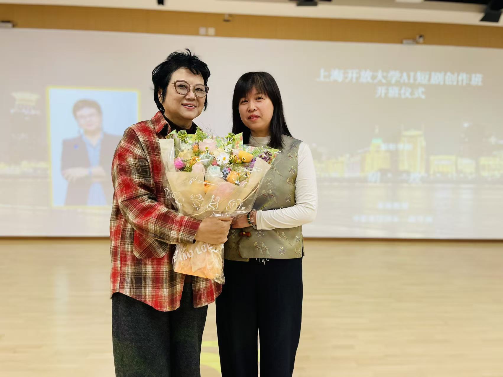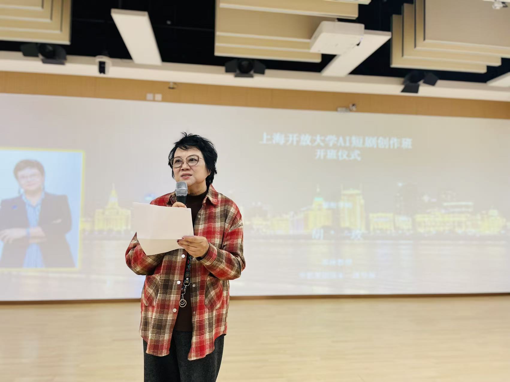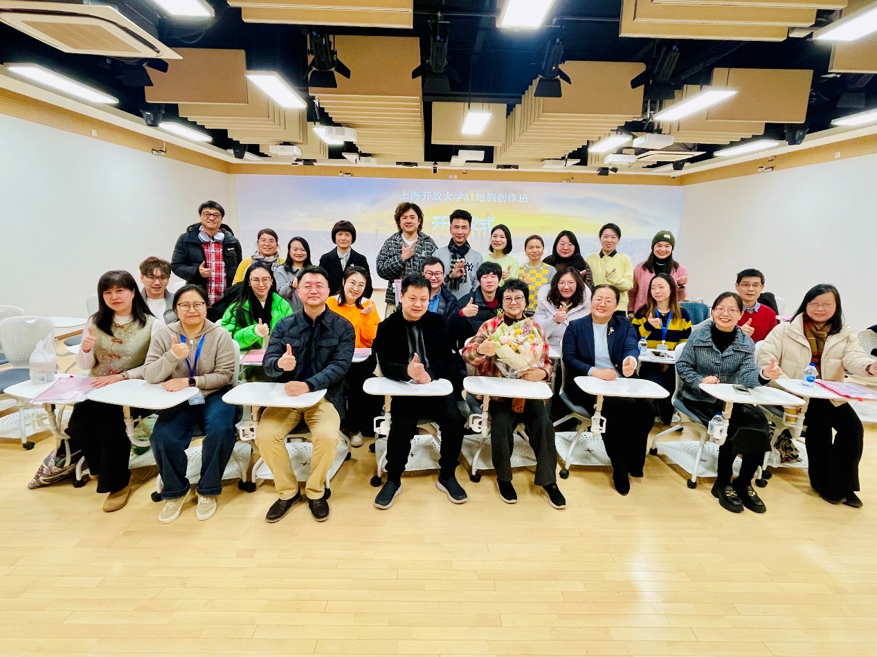 2026年1月15日上午,上海开放大学备受好评的“AI视频创作短训班”全新升级为“AI短剧创作班”,并在国顺路校区精彩开启。本次开班仪式由上海开放大学人文与公共管理学院党总支书记林晓英主持,上海开放大学副校长、兼人文与公共管理学院院长张瑾,上海开放大学客座教授、国家一级导演胡玫,上海电影集团公司专职导演、课程授课导师叶田 ,上海开放大学艺术学科带头人吴春集 教授,与全体20多位学员共同见证。