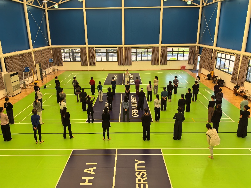 在国顺路288号文体馆内,一场由周雨奇老师主讲的公益讲座《中国古典舞身韵·拧立圆》正如火如荼地进行。本次讲座自开放报名以来便反响热烈,原定的小型教室因报名人数近70人而无法容纳,最终特别调整至空间更开阔的文体馆举办,足见市民对美育体验与艺术学习的热情之高。讲座以实践为主,周老师通过细致的动作分解与韵律讲解,带领参与者亲身感受中国古典舞“拧、倾、圆、曲”的形态之美与呼吸之间的气韵流动。在互动环节中,不少零基础的学员也踊跃尝试,在举手投足间体会中国传统舞蹈的优雅与力量。周老师课后感慨:“很开心能将自己所学向外传播,本以为内容可能偏理论,没想到第一次接触的同学们反馈‘意犹未尽’。”这生动体现了开放教育将专业艺术知识以可感、可触、可体验的形式普惠大众的初衷,也呼应了人民群众对丰富精神文化生活、追求美好生活的深切向往。从理论到实践,从教室到场馆,这一调整不仅是空间的扩容,更是开放大学响应社会美育需求、推动艺术教育普及的暖心之举。