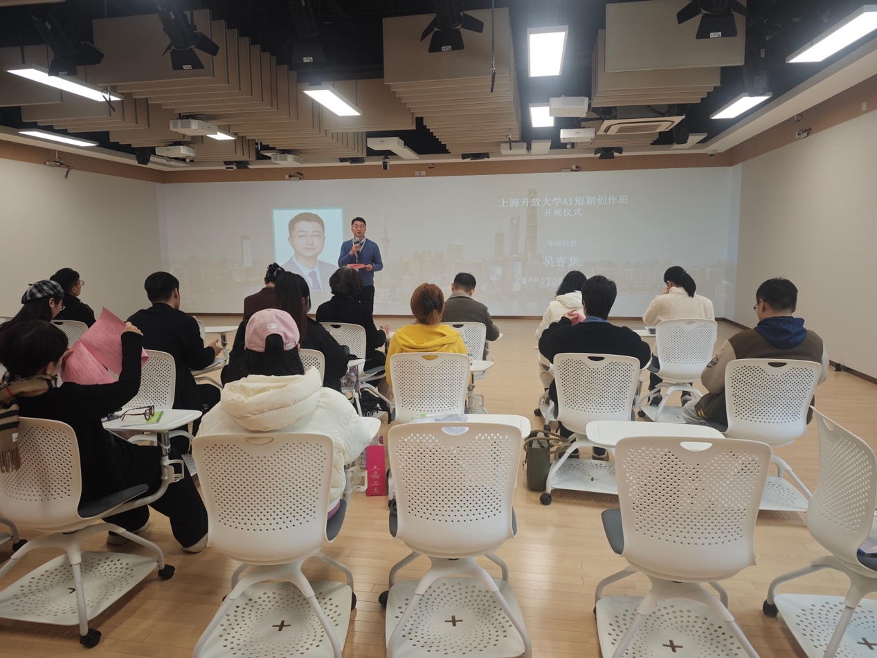 2026年3月28日上午,上海开放大学美育智慧空间内气氛热烈,2026年第二期AI短剧创作班开班仪式在此隆重举行。来自全国各地的学员齐聚一堂,共同开启为期五天的AI短剧创作学习之旅。