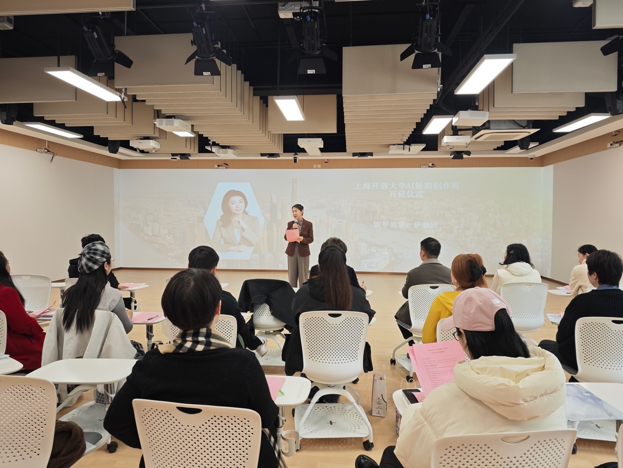 她介绍,上海开放大学于今年1月成功举办第一期AI短剧创作班,零基础学员在短时间内创作出令人惊喜的作品,充分证明:AI短剧创作,不仅可能,而且可行。本期课程在前一期基础上进一步优化,由中影集团国家一级导演胡玫老师担任领衔导师,叶田、张仪、张晟、吴春集、李韩栋等一线影视导师全程授课,帮助学员从零基础到完成一部具备商用潜力的AI短剧。