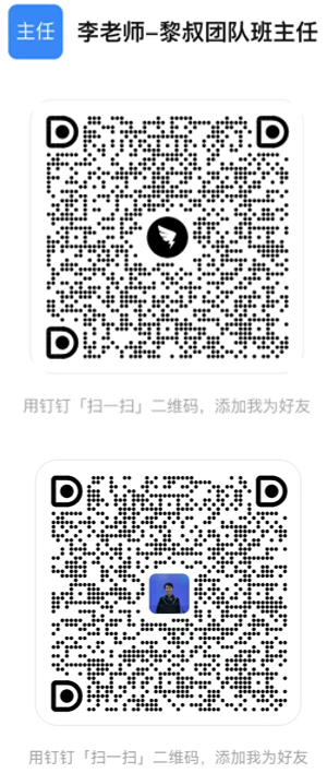 2. 报名咨询,钉钉扫描李老师或伊老师,添加好友,请务必备注为开大社工中级“高分护航”班: